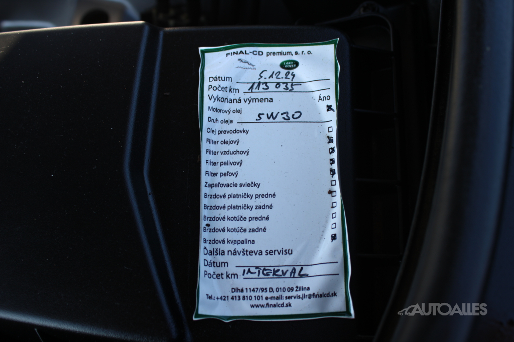 MOŽNÝ ODPOČET DPH, cena bez DPH 24 309,-€. Vozidlo ako nové kupované v SR / po 1. majiteľovi a nebolo nikdy havarované. Top výbava. Originálne najazdené kilometre, ktoré si môžete overiť aj u ktoréhokoľvek oficiálneho predajcu Land Rover. O vozidlo bolo maximálne starané, pravidelný servis. Posledná servisná prehliadka 12/2024 pri 113 035 km. Auto je vo výbornom stave a jazdí bez akýchkoľvek problémov. Interiér v super stave. Pohon 4x4 si môžete vyskúšať aj v teréne pri našom areáli. Ku vozidlu je vystavený výpis zo štátneho Registra prevádzkových záznamov vozidiel - ODO-PASS, ktorý zobrazuje históriu najazdených kilometrov vozidla! AUTOALLES: najväčší slovenský autobazár, už od roku 1990, doživotná záruka na pôvod vozidla s garanciou vrátenia peňazí. Tešíme sa na vašu návštevu.